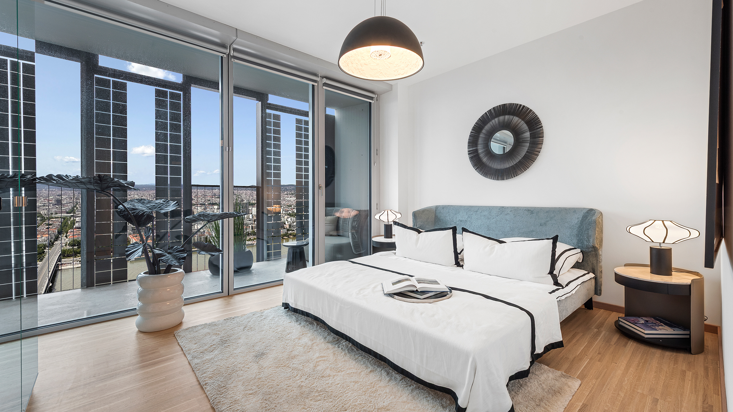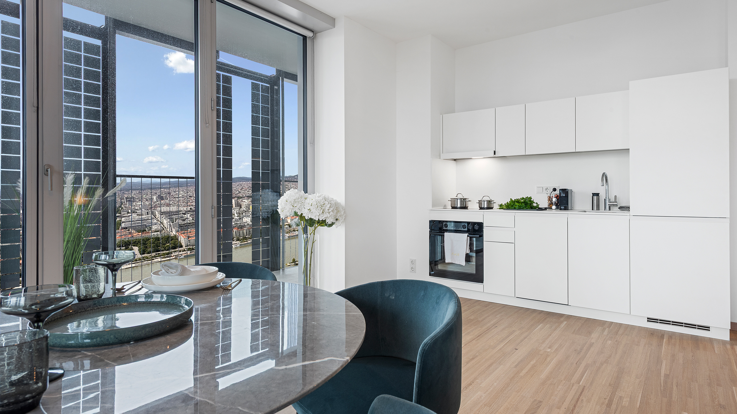 Auch die Lage könnte kaum besser sein – in jede Richtung: Stadtstrand und Donauinsel direkt vor der Tür, die City zum Greifen nah. Darüber: nichts als Himmel. Wer schon immer hoch oben zuhause sein wollte, hat jetzt die Gelegenheit dazu.